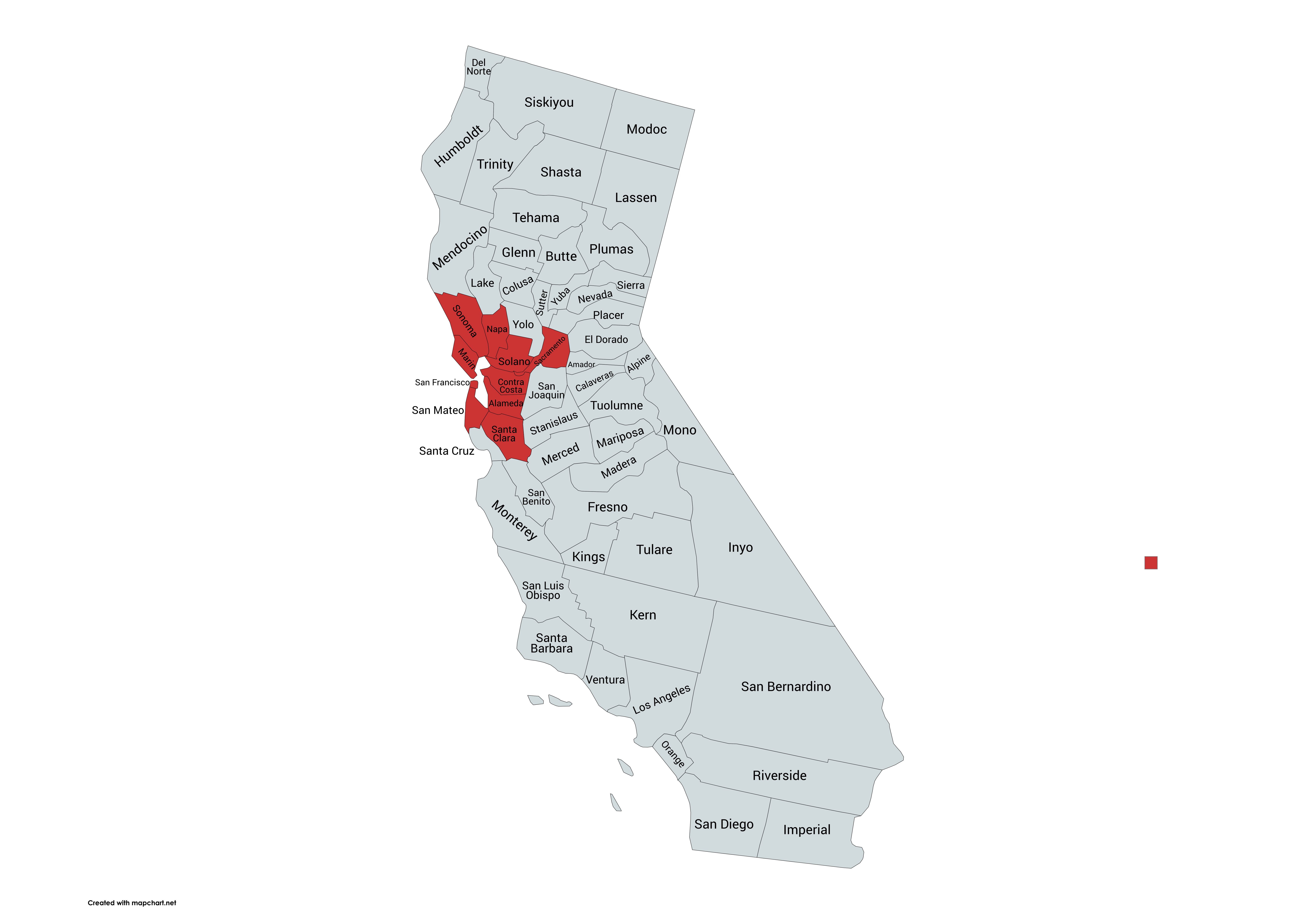 San Francisco, Marin, Sonoma, Napa, Solano, Sacramento, Contra Costa, Alameda,Santa Clara, San Mateo